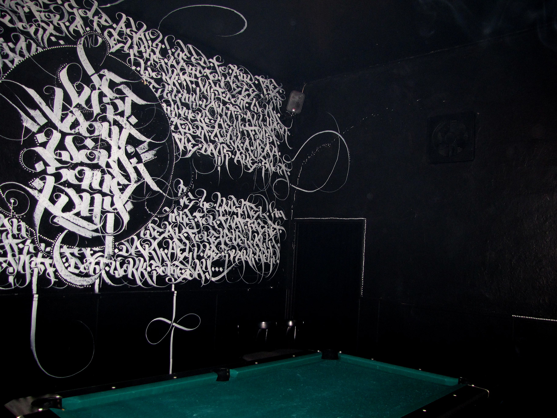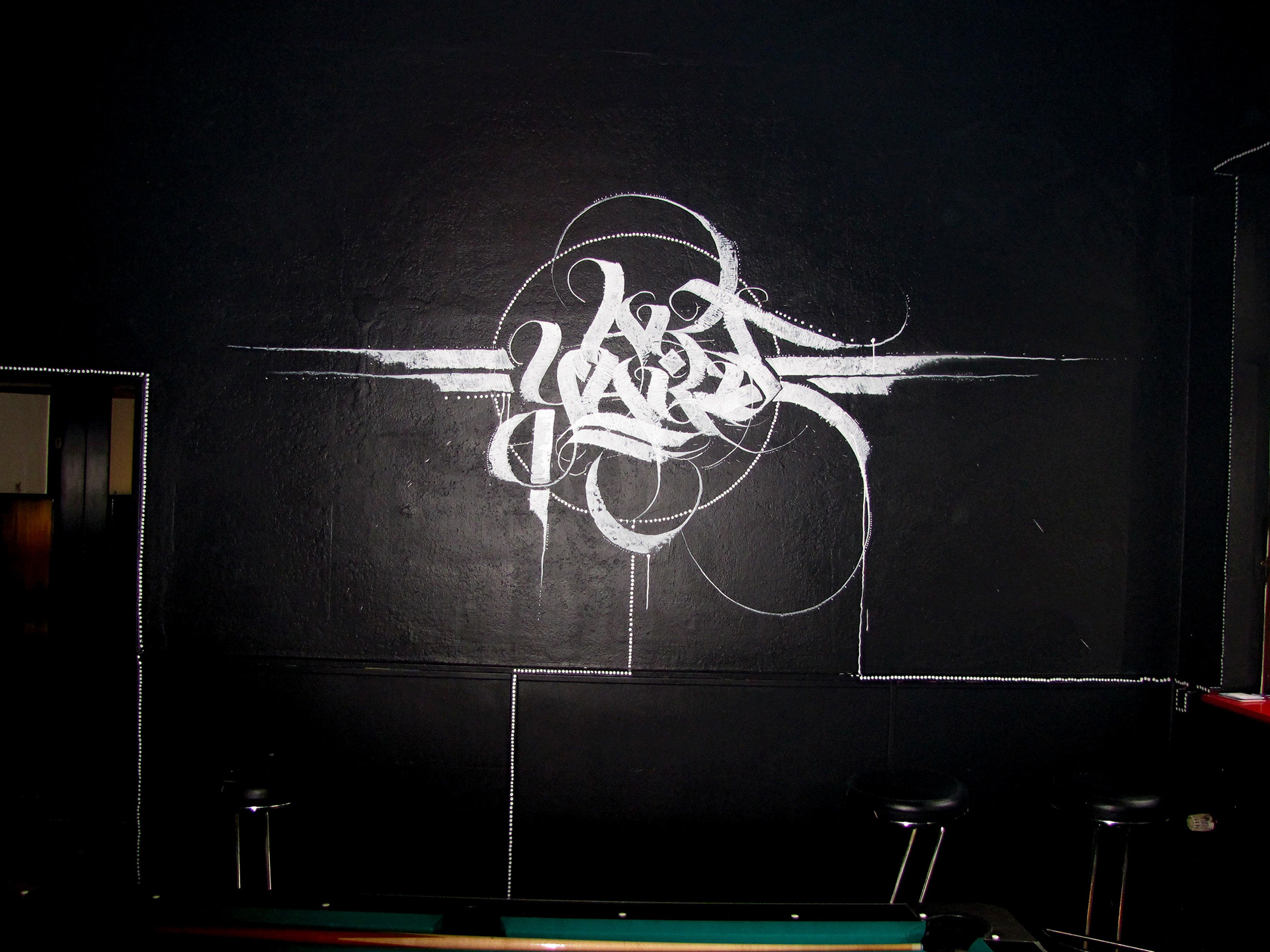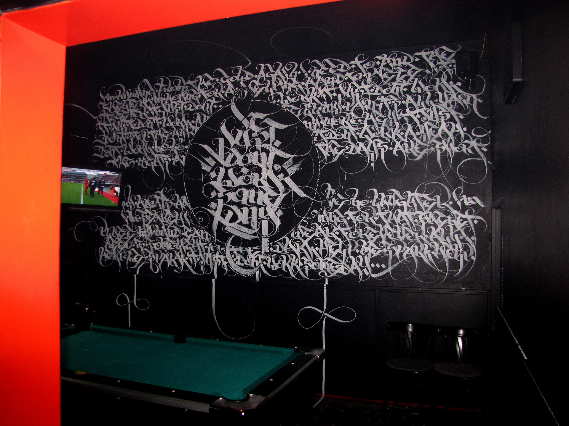 Just finished the poolroom of the "ArtYard" Club in Bremen, Germany. The lyrics are taken of the most beloved song of the clubs owner.